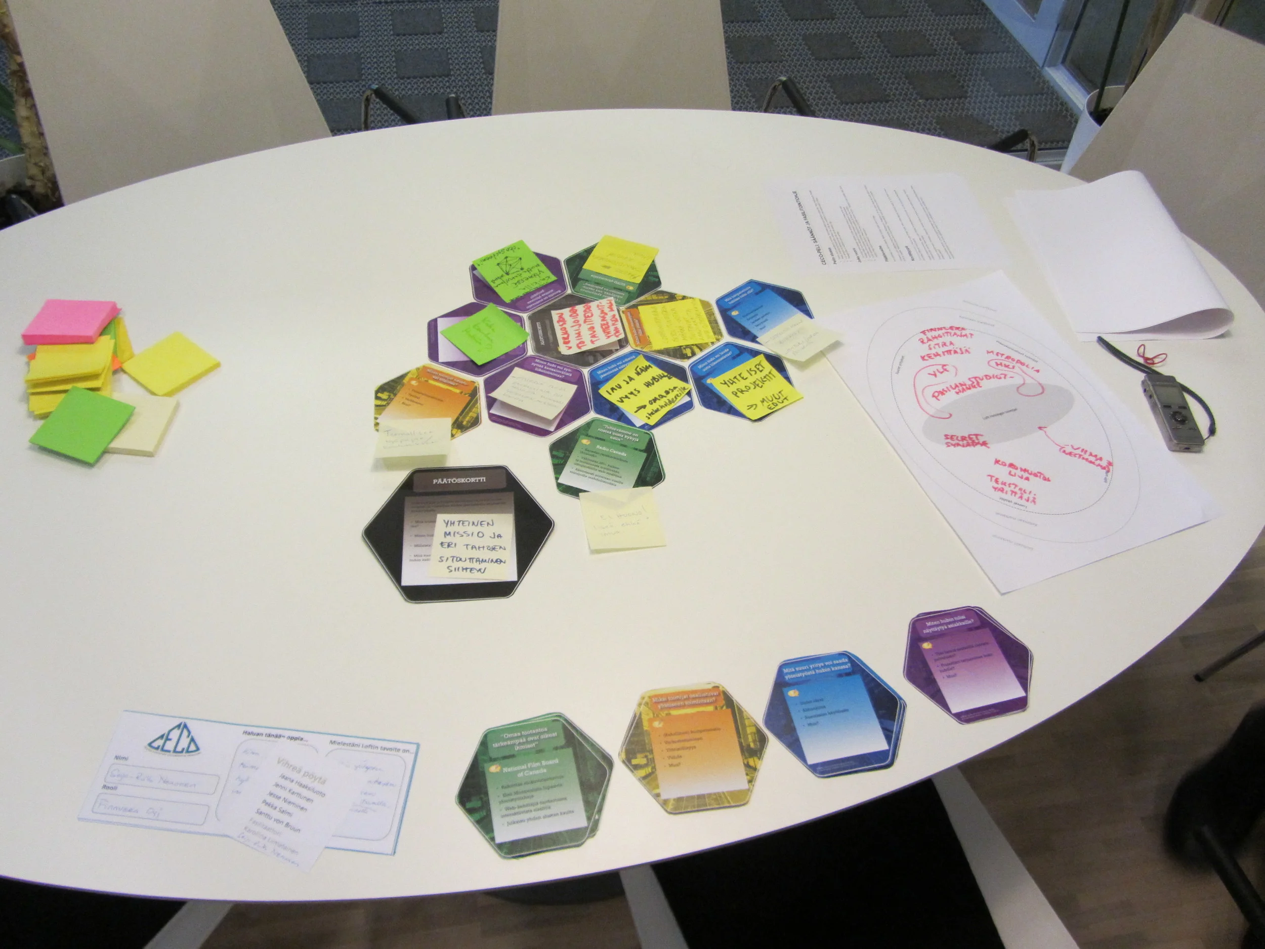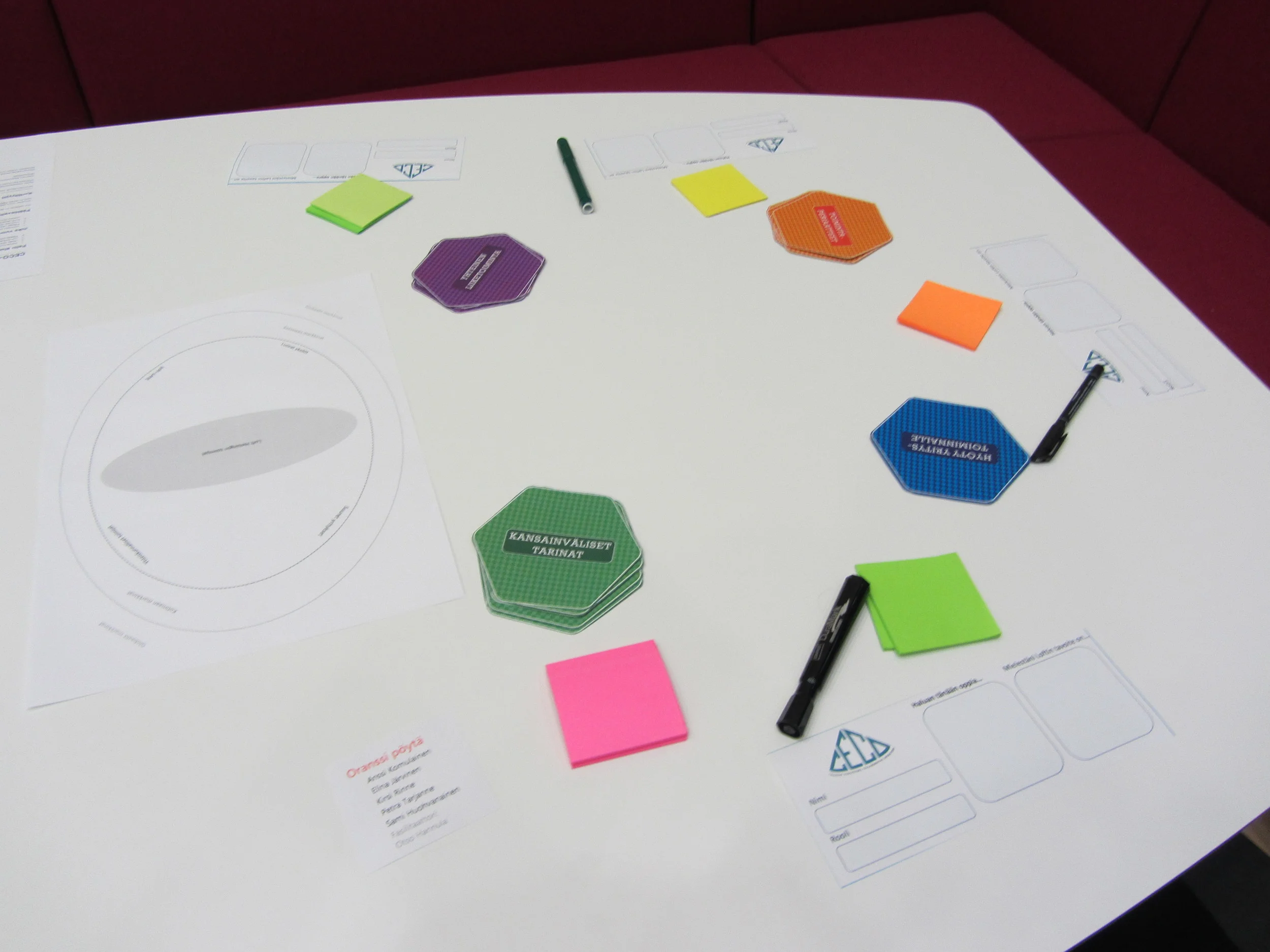 CECO Hub Game is a “decendant game” of ATLAS - a game for thinking about and planning hubs that act as a meeting point for large and small companies looking to network and create new business opportunities. It is based on the ATLAS game and uses the same key mechanics and material templates with a more streamlined beginning and a summarizing end card.